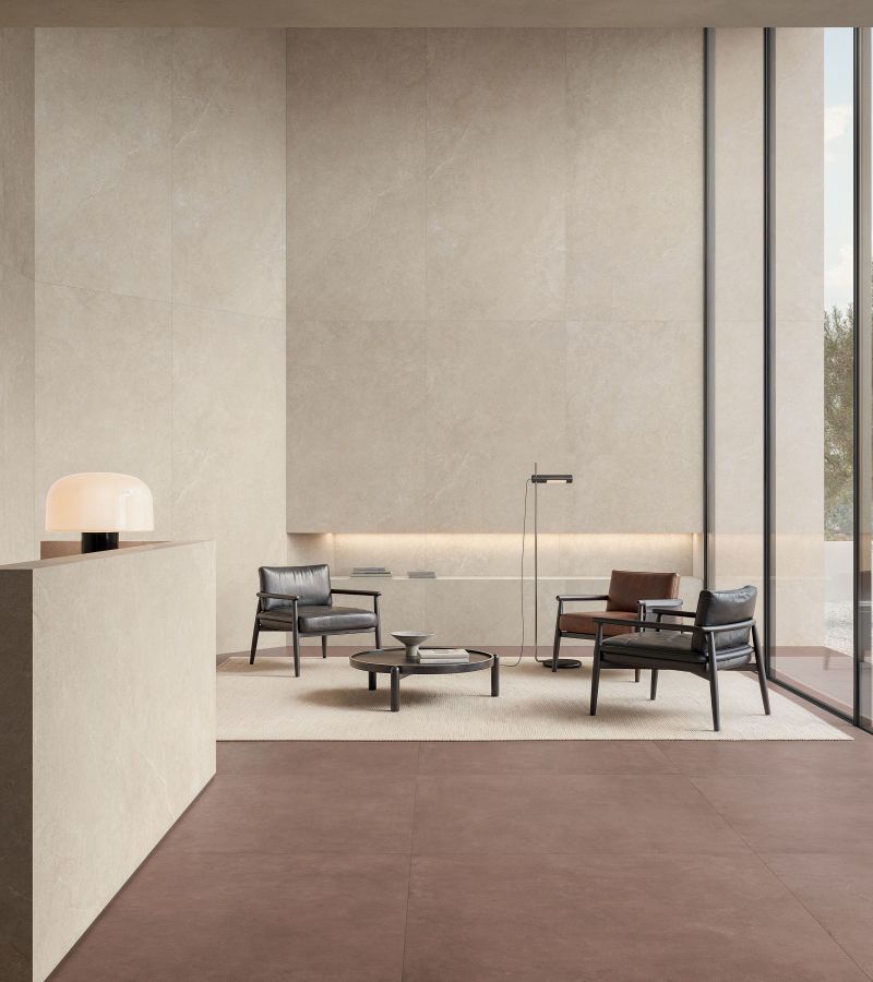 Limestone by Impronta is a ceramic stone with an elegantly natural and essential texture, designed to meet the need for comfortable and rejuvenating spaces. Limestone brings together multiple mineral references and a masterful balance that combines a typically compact limestone texture with rare, fine, and delicate veins.