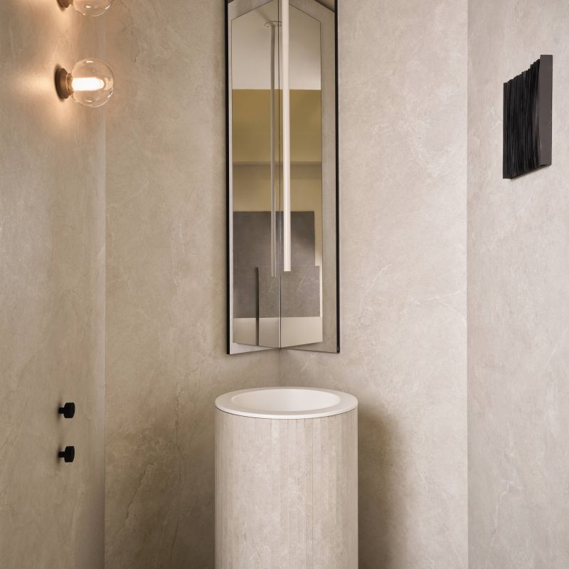 À Cersaie 2025, Impronta a présenté le projet Impronta Going Supreme, signé une fois de plus par les directeurs artistiques Andrea Parisio et Giuseppe Pezzano, un espace d’exposition dédié aux grands formats.
