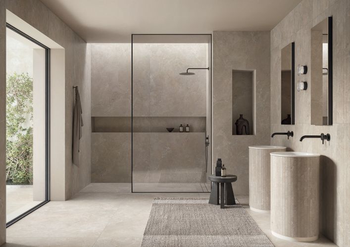 Ispirata al limestone e alle brecce marmoree amate fin dall’antichità, la collezione reinterpreta il fascino del passato in chiave moderna, con tonalità neutre e luminose che donano agli spazi armonia e carattere.