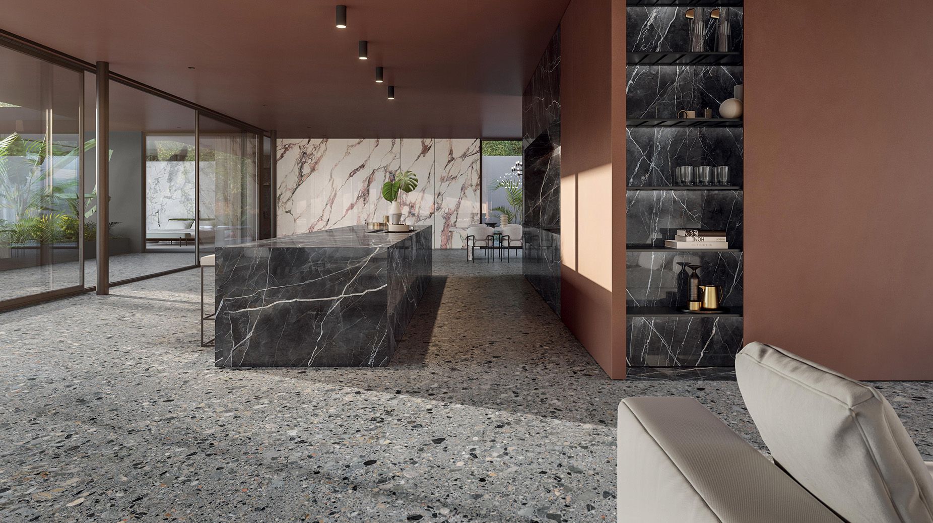 Mega Pubblicato in Italgraniti. Titolo introduttivo: Mega Testo introduttivo: Mega, la tecnologia di Italgraniti che consente di ottenere lastre di gres porcellanato spesse solo 6 mm grandi fino a 160x320 cm. Bathroom Experience Arredo Bagno Italgraniti